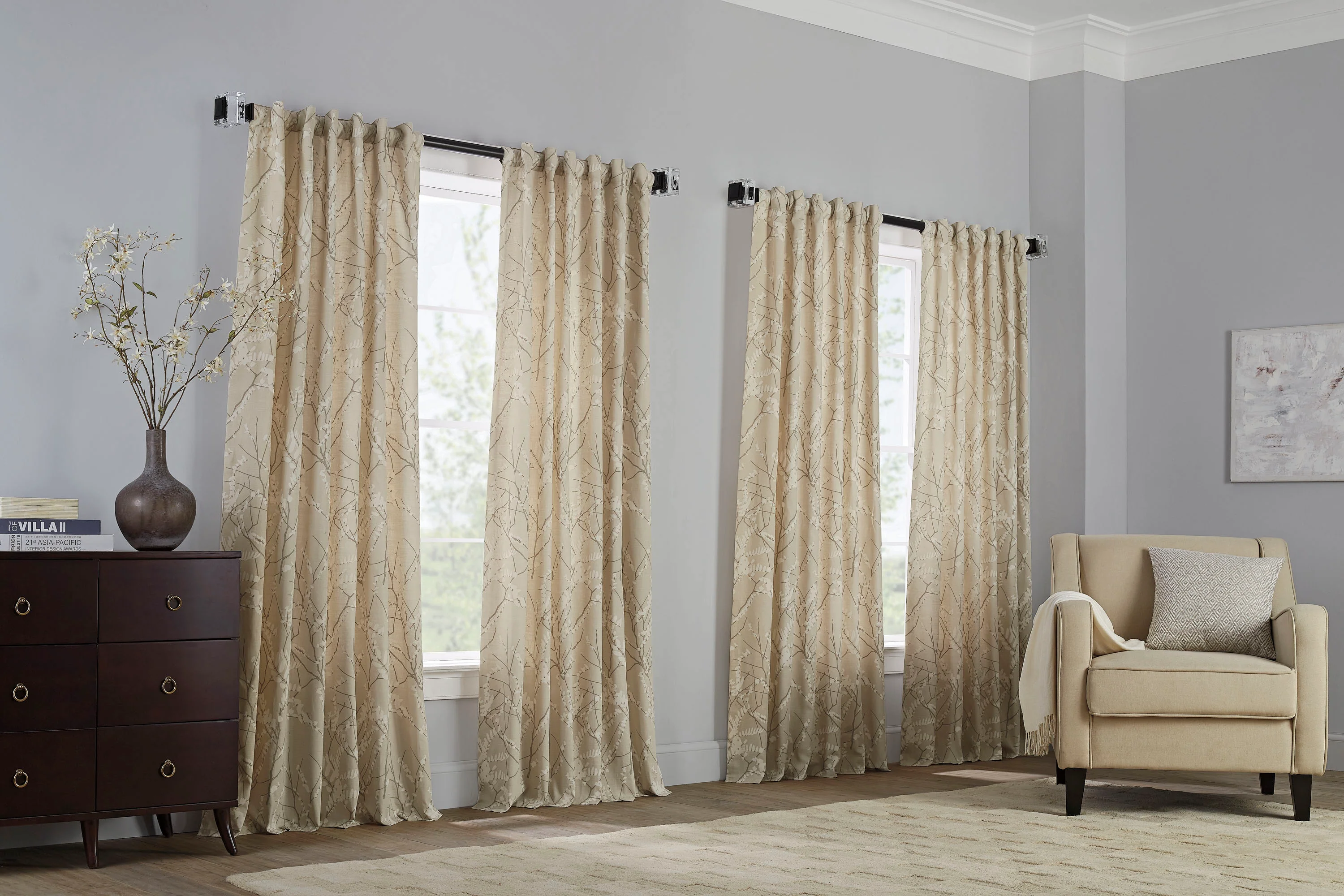 Catkin Leaf Printed Room Darkening 100% Cotton Window Panel